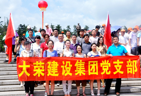7月的長沙驕陽似火,室外氣溫普遍高于37°,但這似乎一點也沒動搖我們前進(jìn)的步伐,第一站是韶山,參觀了毛主席故里,這一天的行程可謂是充實和激揚(yáng)的。在毛主席銅像廣場集團(tuán)董事長徐正榮和支部書記徐新強(qiáng)在毛主席銅像廣場獻(xiàn)花致敬,充分體現(xiàn)了我黨支部對革命領(lǐng)袖的頂禮膜拜,從年輕人到集團(tuán)公司老員工,從公司職員到董事長,從普通黨員到支部書記,不同的人群,以不同的形式,表達(dá)了對黨同樣的感動、信服和愛戴。集團(tuán)黨員拿著二幅橫幅“大榮建設(shè)集團(tuán)黨支部”和“韶山紅色之旅”并手舉五星紅旗和黨旗彰顯著愛黨、愛祖國、愛社會主義的激情。第二站是劉少奇故居,參觀了炭子沖等紀(jì)念館。
