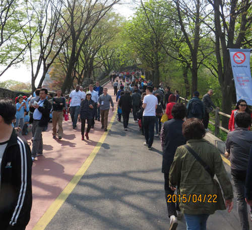 美味的用餐后,稍作休息我們繼續(xù)前往《星你》的拍攝地——南山公園、首爾塔以及愛(ài)情鎖墻。位于首爾市中心的南山公園,樹林繁茂,是個(gè)適合散步的好地方。公園內(nèi)有八角亭和朝鮮時(shí)代的烽火臺(tái),以及可俯瞰首爾市區(qū)的首爾塔,風(fēng)景非常優(yōu)美。