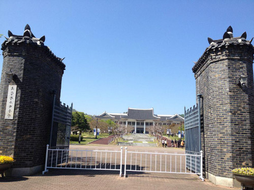 第五天,我們前去了土產(chǎn)雜貨店,選購(gòu)韓國(guó)著名泡菜等當(dāng)?shù)孛a(chǎn)饋贈(zèng)親友。隨后到達(dá)光州國(guó)立博物館。為了振興發(fā)展韓國(guó)文化藝術(shù)和提高國(guó)民素質(zhì),韓國(guó)政府于1977年開(kāi)始建造國(guó)立光州博物館,1978年12月6日正式開(kāi)館。按照韓國(guó)傳統(tǒng)樣式建立的國(guó)立光州博物館規(guī)模為地上2層、地下4層,面積達(dá)3305平方米,包括展覽室、文物保管設(shè)施和室外展覽場(chǎng)等設(shè)施。