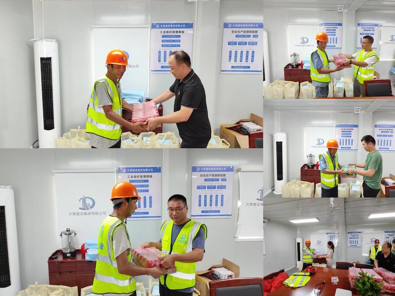 烈日當(dāng)空,熱浪滾滾。項目部一線工作人員仍堅守崗位、辛勤工作。為保障項目現(xiàn)場高溫期間安全施工,關(guān)懷奮戰(zhàn)在一線的施工人員,7月25日上午,集團公司相關(guān)領(lǐng)導(dǎo)前往各項目部親切慰問了堅守崗位的項目部管理、施工人員,為他們送上防暑降溫物資,并提醒大家防范高溫天氣,做好防暑降溫工作,保證安全、健康、清涼“度夏”。