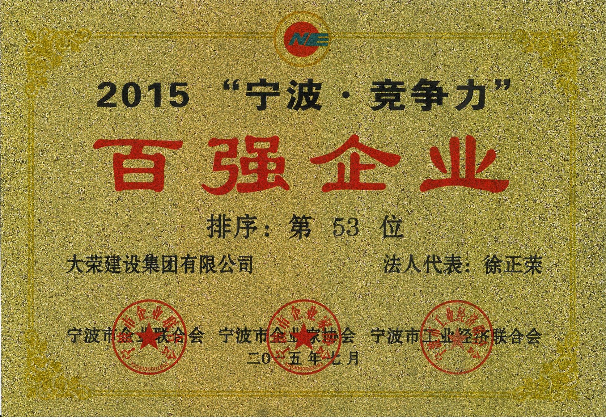 日前,在寧波市企業(yè)聯(lián)合會、企業(yè)家協(xié)會和寧波市工業(yè)經(jīng)濟聯(lián)合會召開的2015寧波市百強企業(yè)頒獎大會上,大榮建設(shè)集團有限公司成功入圍2015“寧波·競爭力”百強企業(yè)。