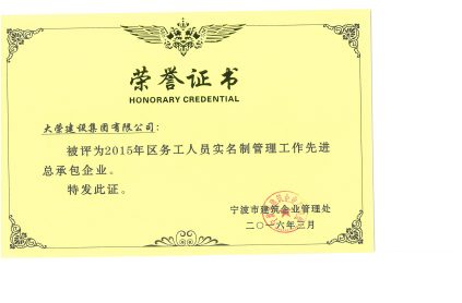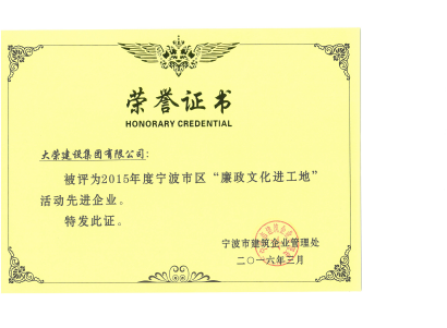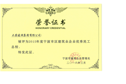 2015年度寧波市區(qū)建筑業(yè)優(yōu)勝(先進(jìn))企業(yè)