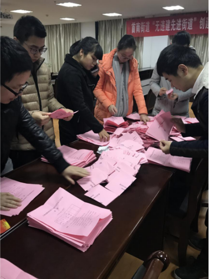 上午12點整,無記名投票截至,工作人員在鄞州區(qū)首南街道會議室進行唱票,計票,匯總,最終選舉產生了寧波市鄞州區(qū)第十八屆人民代表大會首南街道第三選區(qū)代表兩名,分別為寧波繁榮置業(yè)有限公司總經理徐曉磊、寧波銀泰環(huán)球城商業(yè)有限公司總經理王琳。