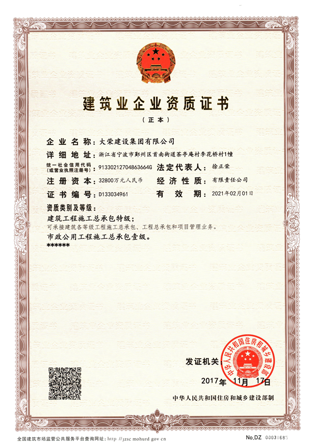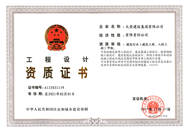建筑行業(yè)(建筑工程、人防工程)甲級(jí)資質(zhì)證書(shū)